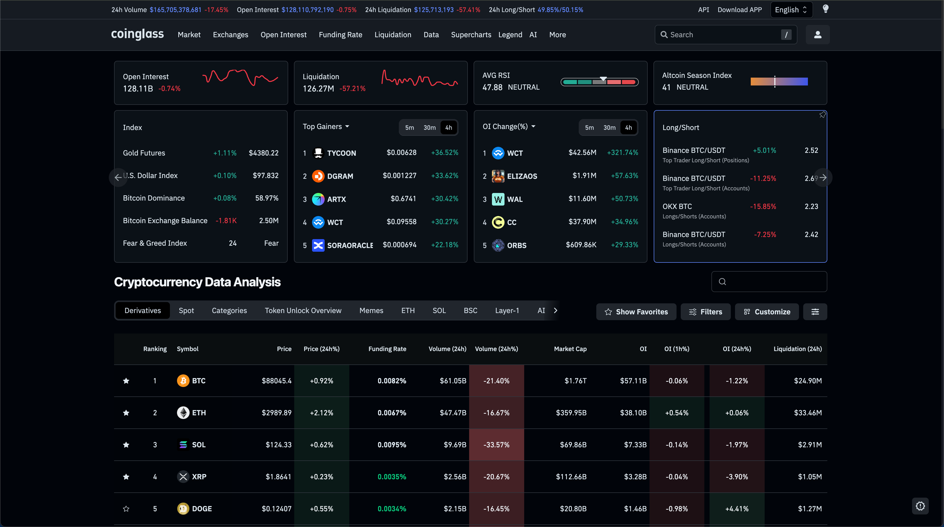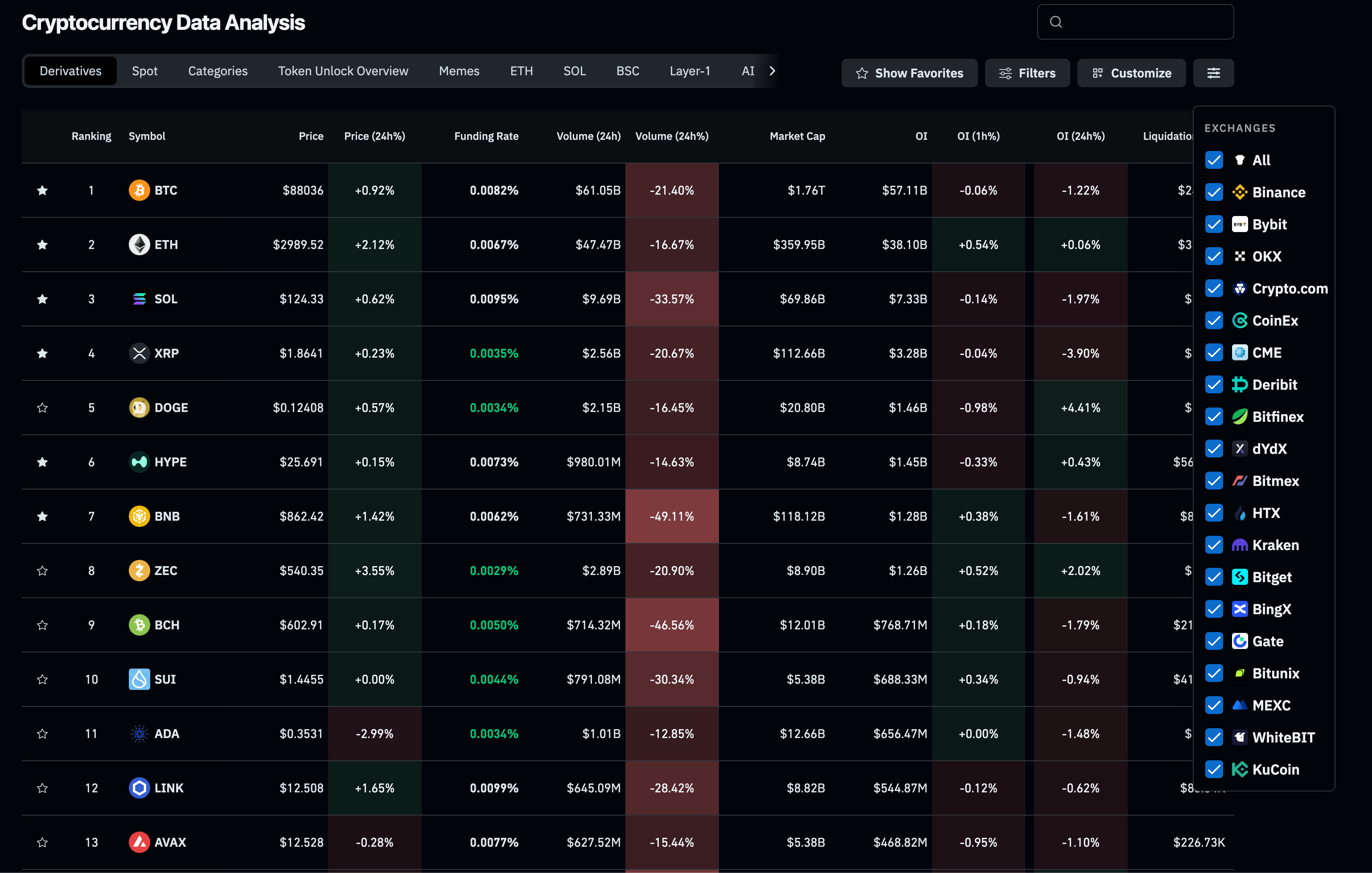 The platform offers extensive customization capabilities, allowing users to configure the dashboard with the indicators they find most valuable. You can personalize the interface to track metrics such as Market Cap, the Open Interest (OI) to Market Cap ratio, Funding Rates, total OI, OI Change, Price Change, Volume, and Liquidation data. CoinGlass is designed to provide maximum flexibility, enabling you to build a custom instrument panel that aligns perfectly with your trading strategy.