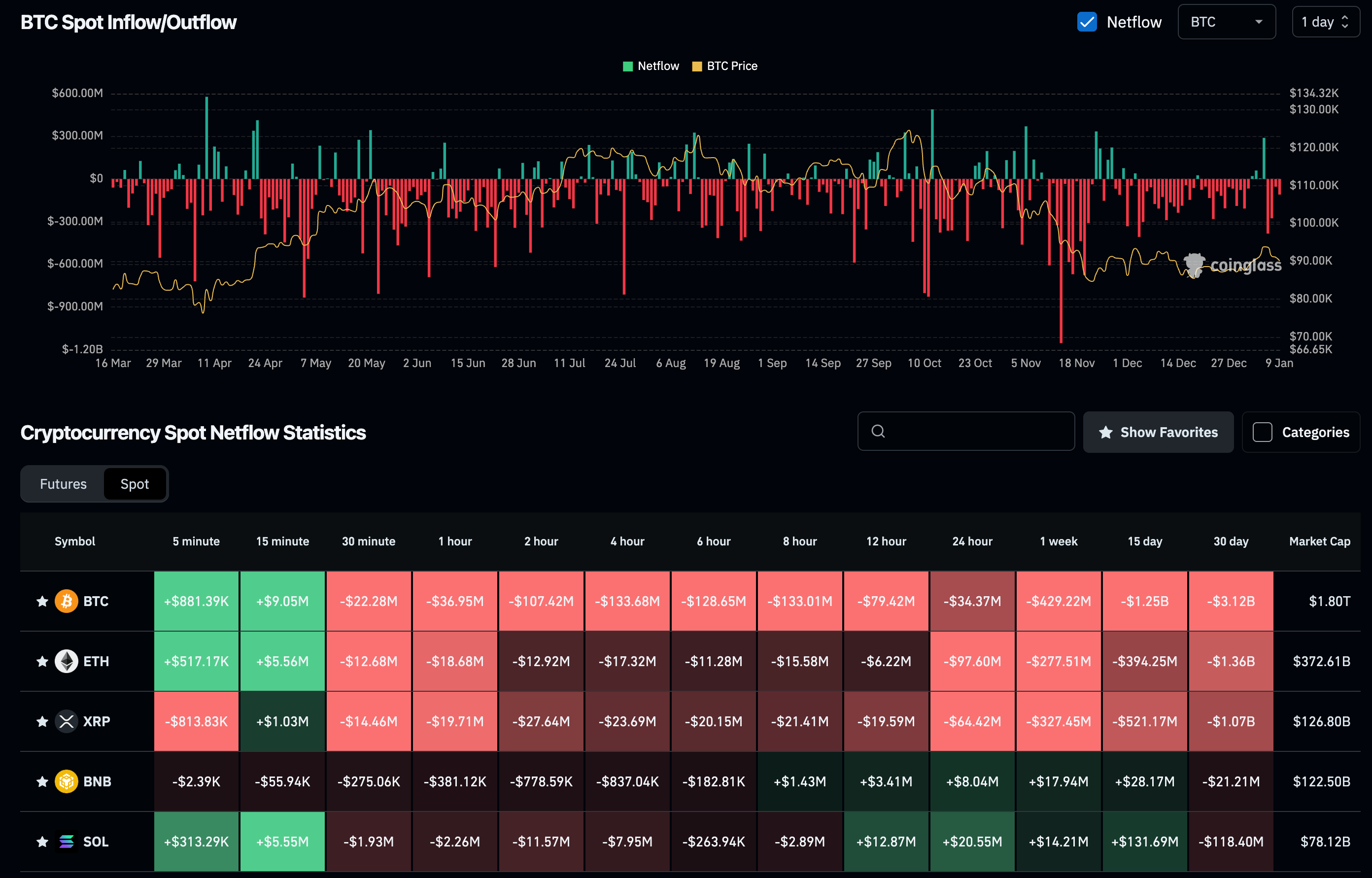 现货市场交易的是标的本身,例如用USDT直接买入BTC并获得实际持仓。在本文口径下,现货净流入意味着在统计窗口内,主动买入的成交量超过主动卖出的成交量,通常对应更强的即时买盘压力。举例来说,如果某一分钟BTC/USDT的主动买入为120 BTC、主动卖出为80 BTC,那么净流入为+40 BTC,表明买方更积极地以吃单方式成交。需要强调的是,现货净流入不等于新增资金从场外进入市场,它只说明在成交层面,买方更主动;价格是否随之上涨,还取决于盘口深度与卖方供给是否愿意在更高价位持续提供流动性。