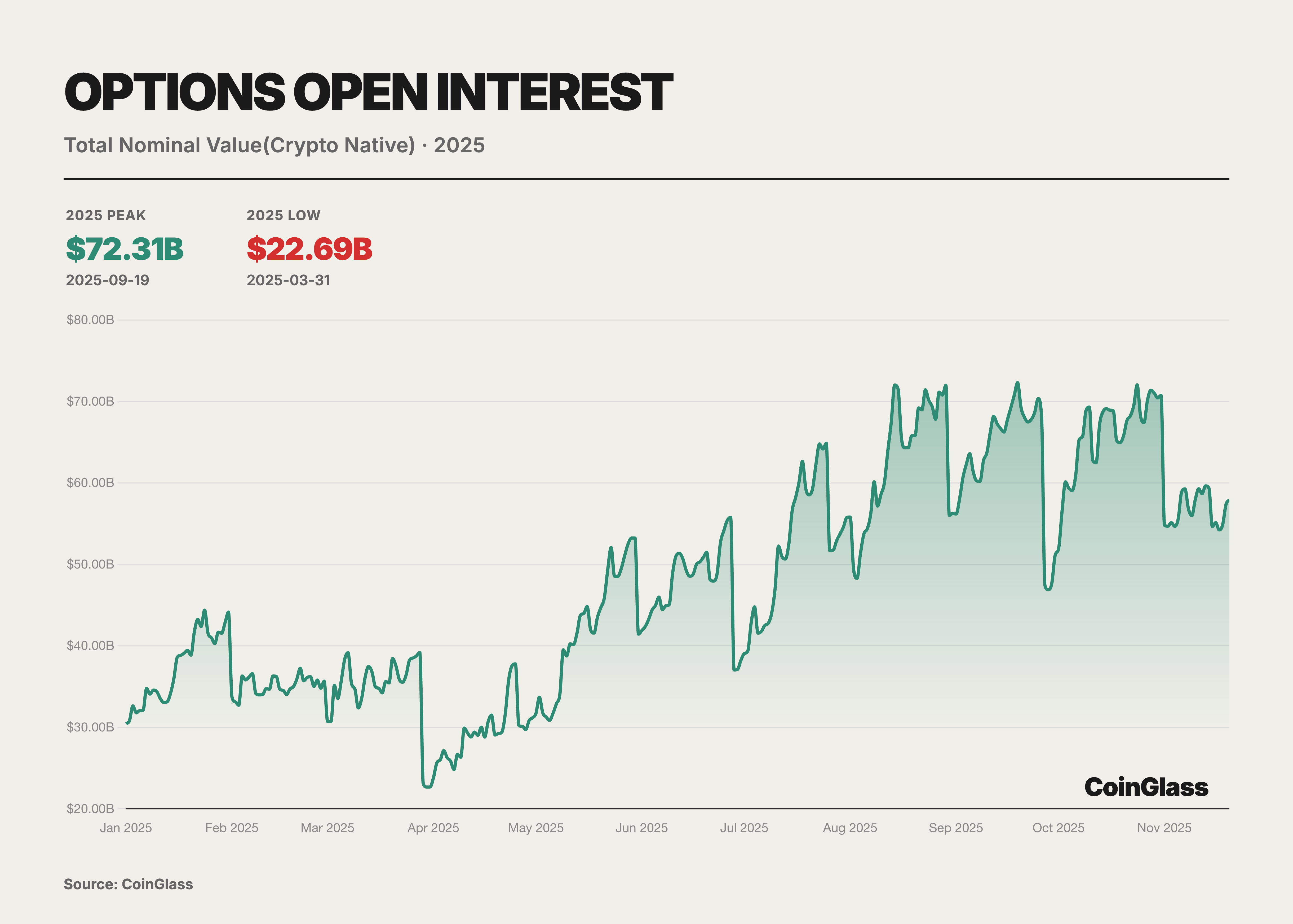 若无另外标注,则本报告默认的所有数据均来源于 CoinGlass,时间周期为 2025 年 1 月 1 日——2025 年 11 月 20 日。CoinGlass 对本材料信息的准确性、完整性、及时性或可靠性,或对任何加密货币、数字资产、金融工具、市场状况或经济指标的未来表现不作任何明示或暗示的声明或保证。本文提供的信息截至发布日期被视为准确,但可能不会因后续信息或情势变化而更新或修订,CoinGlass并未对这些信息进行独立核实,且不对信息的当前或长期准确性或其在特定情况下的适用性作出任何陈述。本文中的某些陈述可能包含预测或前瞻性声明,对此类声明的准确性或实现不作任何保证。文中提及的过往表现并不能代表未来表现。读者在作出投资决策前,应咨询其专业顾问。此外,本内容并非针对任何投资者或潜在投资者,亦不供其使用,在任何情况下均不得作为购买或出售任何资产决策的依据。