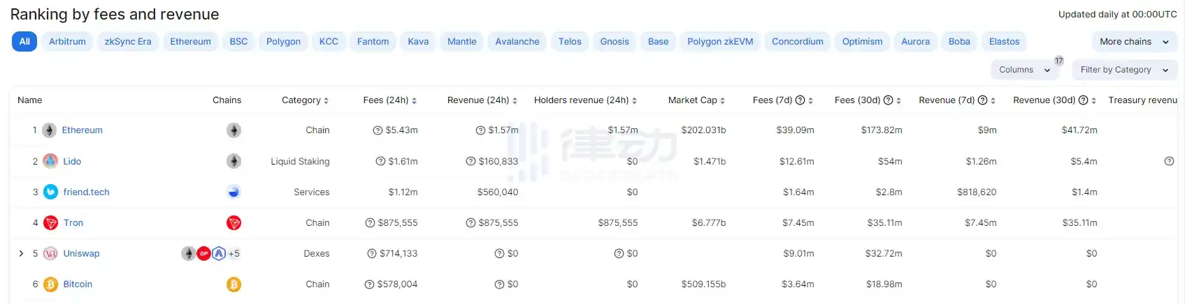 4. 数据:过去 24 小时 friend.tech 协议费用超 Uniswap;
