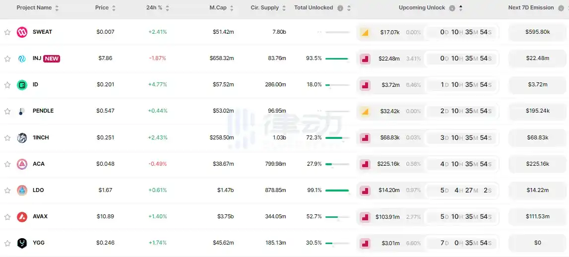 本周解锁数据一览:价值逾 1 亿美元 AVAX 将于周六解锁