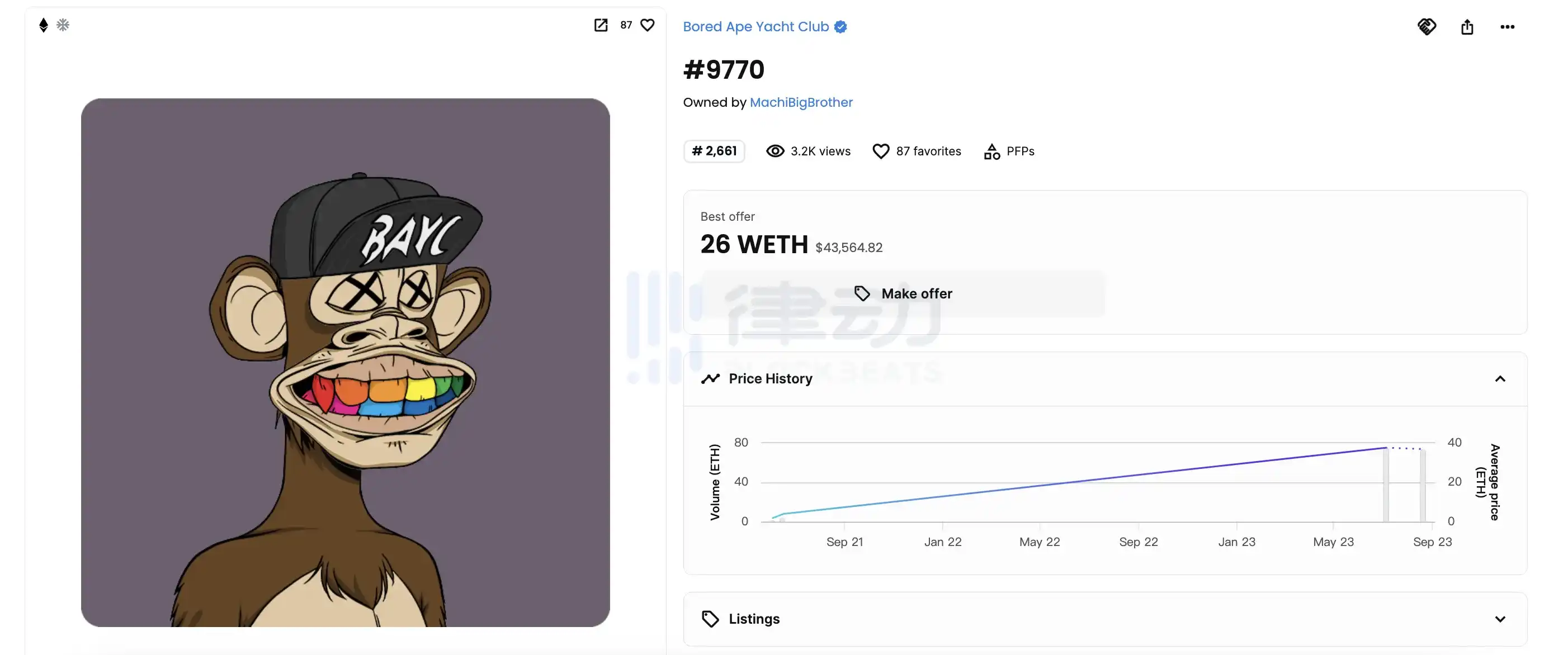 黄立成花费 38 枚 WETH 买入 BAYC#9770